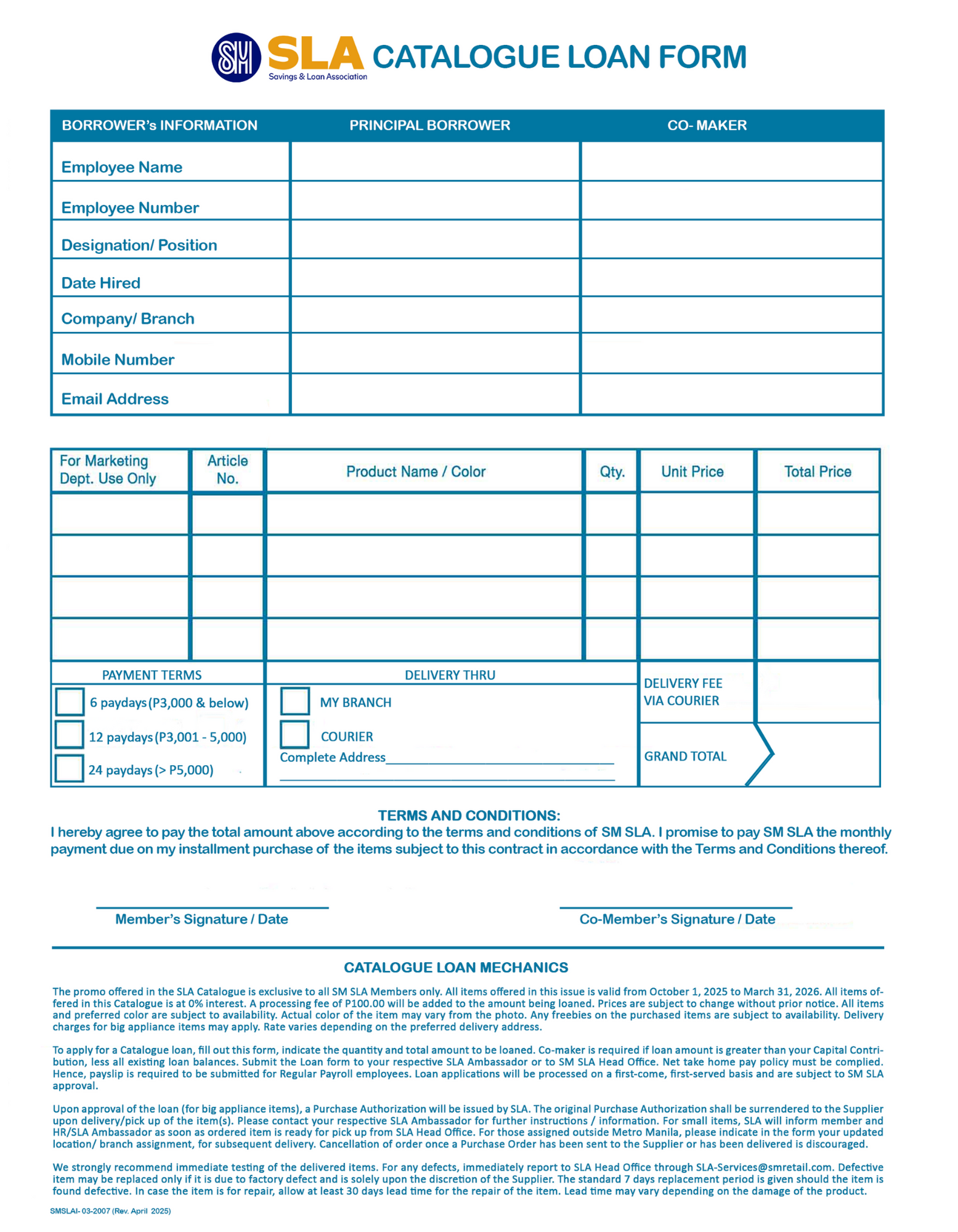 - Catalogue and caravan loans
